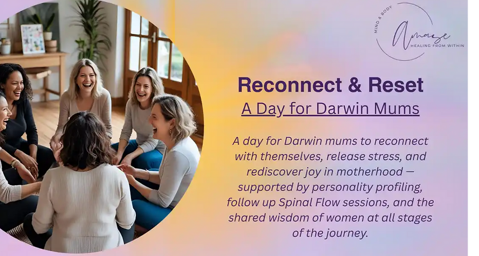 Your journey doesn’t end at 4:30pm.Each mum will have the option to continue with Spinal Flow sessions, where you’ll keep releasing stored stress and tension from your body, creating more space for calm, clarity, and joy in motherhood.